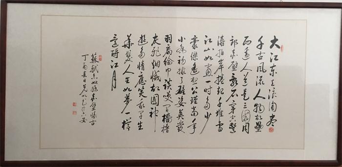 李明海書法研習(xí)唐代褚遂良、懷素和尚之作,上溯魏晉經(jīng)典,下窺明清時(shí)賢,真草隸行四體均涉,尤以草書為主攻。力求清剛大氣,雅俗共賞。