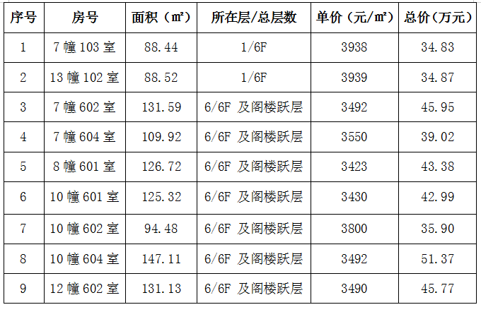一、拍賣標(biāo)的:裕安區(qū)城南鎮(zhèn)振華藍(lán)泊灣9套學(xué)區(qū)房,價(jià)優(yōu),單價(jià)3400元/㎡-3900元/㎡不等,付款方式:首付50%,成交后一年內(nèi)付清余款。具體見下表: