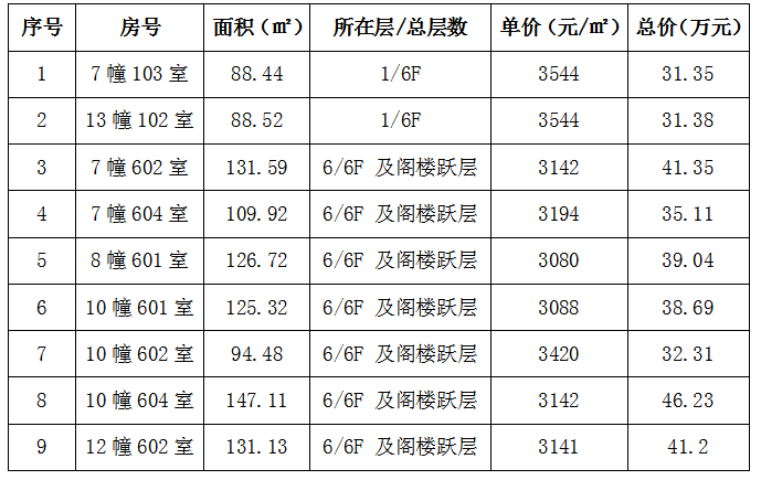 一、拍賣標(biāo)的:裕安區(qū)城南鎮(zhèn)振華藍(lán)泊灣9套學(xué)區(qū)房,單價(jià)3080元/㎡-3544元/㎡不等,付款方式:首付50%,成交后一年內(nèi)付清余款。具體見下表:
