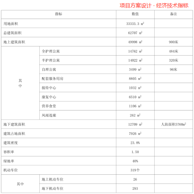 本項(xiàng)目設(shè)計(jì)建筑面積約6.3萬(wàn)平米,其中地下室近1.3萬(wàn)平方米,地上建筑5萬(wàn)平米,建成后可提供1300張床位。本項(xiàng)目包括:1幢8層配套服務(wù)用房,2幢14層全護(hù)理公寓及康復(fù)中心,1幢12層及1幢10層半護(hù)理中心,1幢2層食堂,1幢6層自理公寓(自理公寓一層為沿街門(mén)面),地下建筑部分(包括人防工程)。