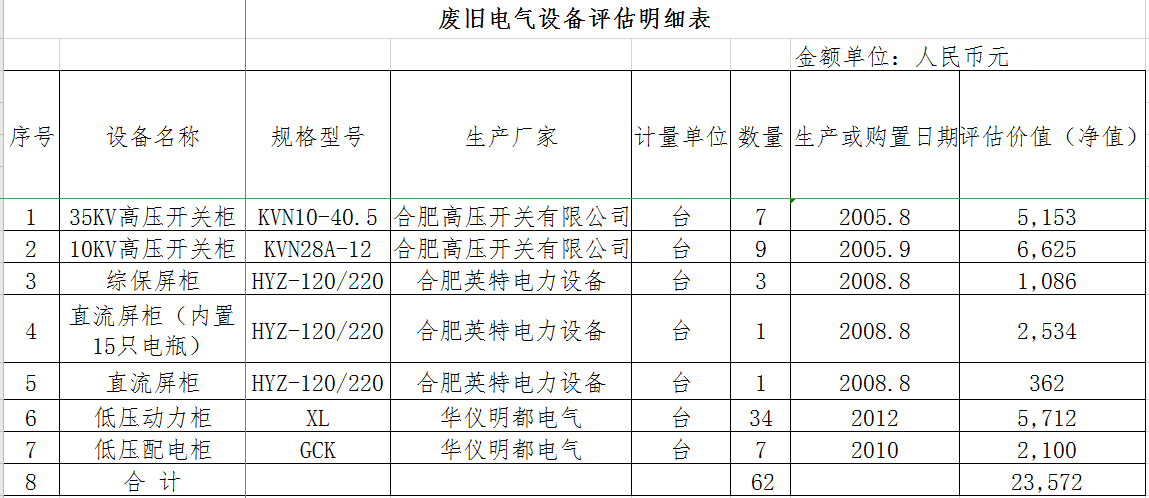 1、廢舊電纜、高壓開關(guān)柜、低壓配電柜等物資一批,整體拍賣,參考價:23.376萬元;