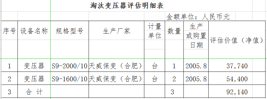 2、S9-2000/10變壓器1臺,S9-1600/10變壓器2臺,整體拍賣,參考價:9.214萬元;