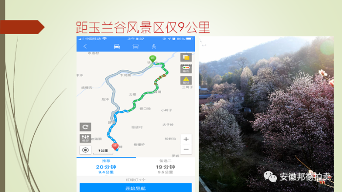 該標(biāo)的位于忘春谷旅游度假區(qū)附近,依山傍水、林木蔥蘢,空氣清新。鄰近玉蘭谷風(fēng)景區(qū)、萬畝映山紅風(fēng)景區(qū),景色宜人,交通便利,距長達(dá)數(shù)公里的野生玉蘭谷僅9公里。一小時經(jīng)濟(jì)圈到312國道、105國道,30分鐘到金寨高鐵站。是您居家養(yǎng)老、投資置業(yè)的絕佳場所。