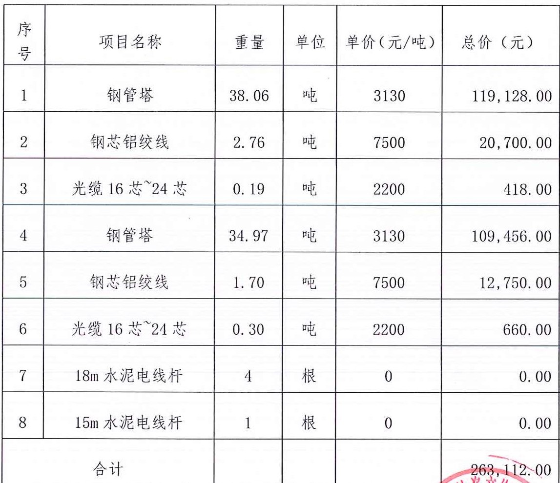 一、拍賣標的:廢舊鋼管塔、廢舊鋼芯鋁絞線、廢舊絕緣鋁芯導線、廢舊銅芯高壓電纜等廢舊物資一批。整體拍賣,參考價26.32萬元。所有標的按現(xiàn)狀拍賣。詳情見所附清單,清單中相關數(shù)據(jù)僅供參考,若與實物不符以實物為準交付。