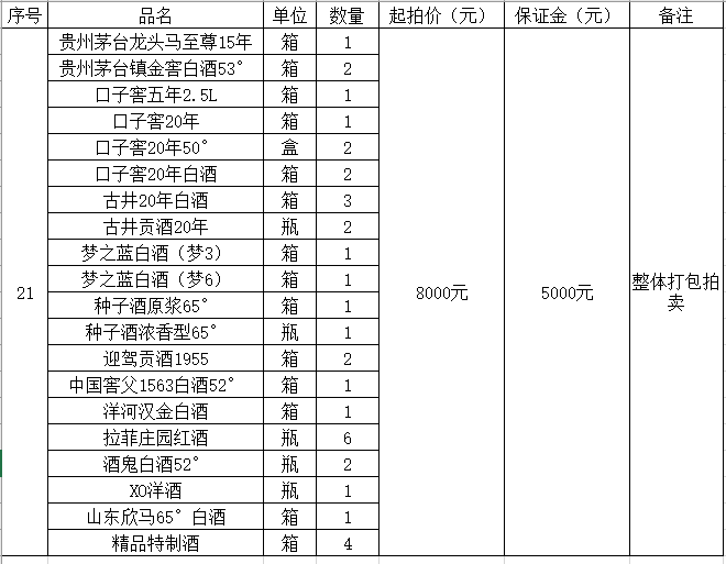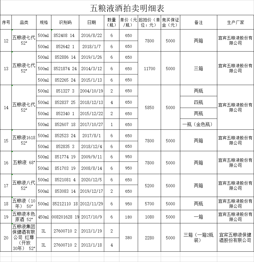 備注:1、以上茅臺(tái)酒及五糧液酒均經(jīng)生產(chǎn)廠家鑒定。