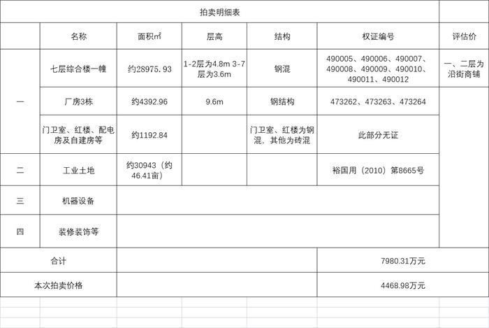 以上標(biāo)的整體拍賣,參考價(jià):4468.98萬(wàn)元。