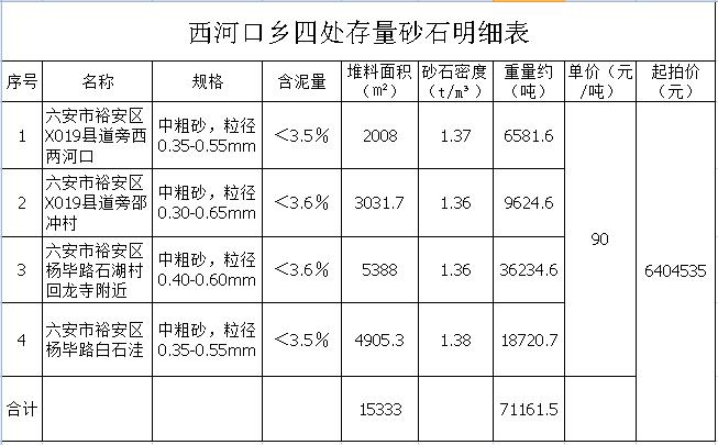 六安市西河口鄉(xiāng)四處存量砂石拍賣公告
