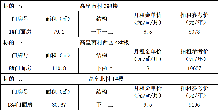 一、拍租標的:六安市裕安區(qū)平橋工業(yè)園高皇南、北村安置小區(qū)門面房3年期租賃經(jīng)營權(quán),詳情見下表