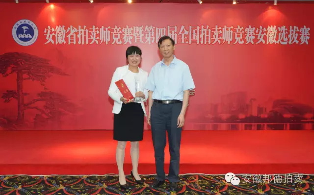 6月25日,安徽省拍賣協(xié)會舉辦的“安徽省拍賣師競賽暨第四屆全國拍賣師競賽安徽選拔賽”在合肥奧體中心圓滿落下了帷幕。我公司總經(jīng)理、國家注冊拍賣師陳曉梅榮獲銅槌獎。拍賣師大賽每五年一屆,今年是第四屆。可喜的是拍賣師陳曉梅在上一屆的比賽中也是獲得了銅槌獎。