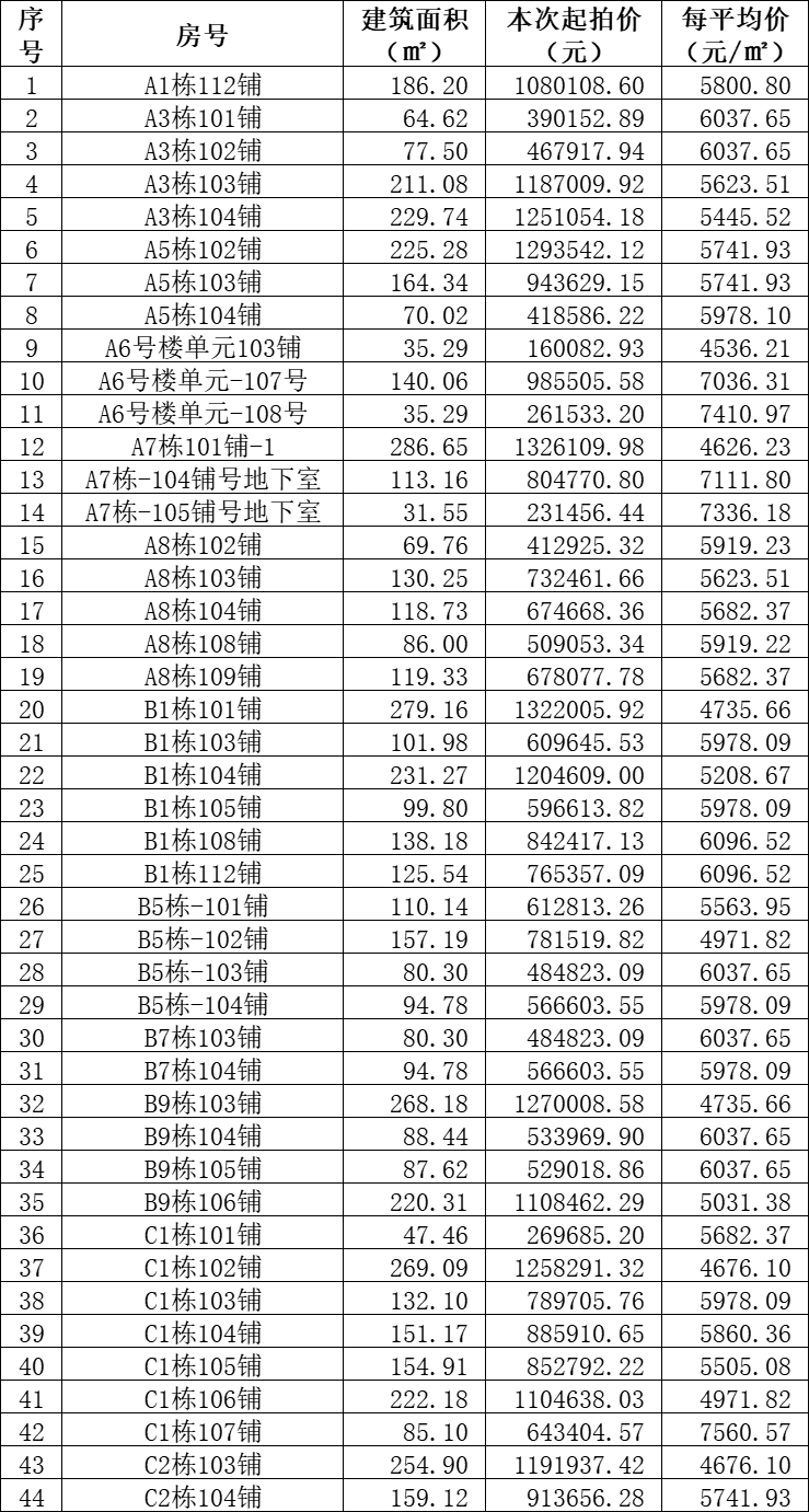 一、拍賣標的:金寨縣梅山鎮(zhèn)金江新城商鋪,詳情見下方明細表↓