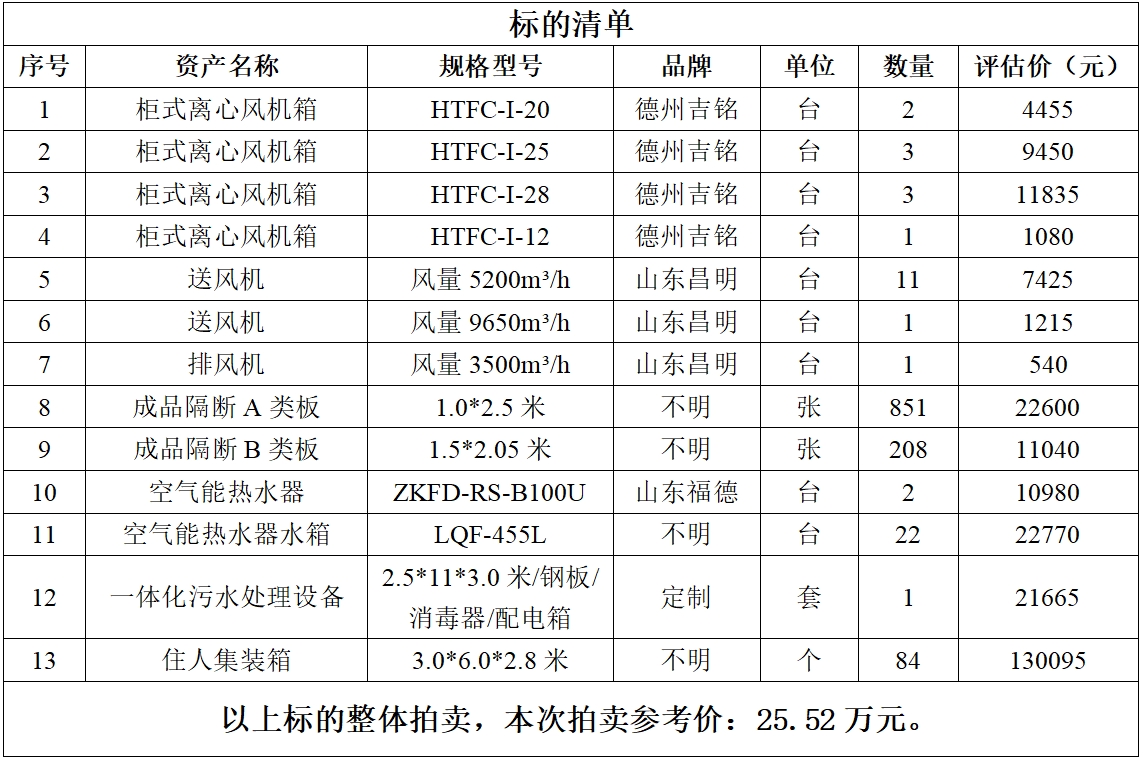 一、拍賣標(biāo)的:六安市中醫(yī)院閑置資產(chǎn)一批,包括:一體化污水處理設(shè)備、柜式離心風(fēng)機(jī)箱、空氣能熱水器、送風(fēng)機(jī)等,參考價:25.52萬元,競買保證金:2萬元。
